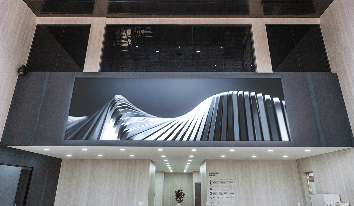 키오스크를 LED 화면 제어 컨트롤러 및 정보 체험으로 활용하고, 정면의 대형 LED 화면에서 메인 컨텐츠를 영상과 이미지 등으로 다양한 방식으로 대화면에서 확인할 수 있도록 구성하였다.